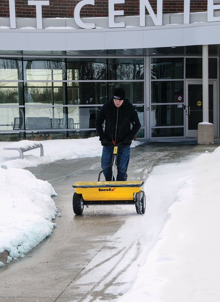 SnowEx® walk-behind drop spreaders are perfect for melting ice in confined areas. Offering 160-pound capacities, each unit spreads in a 28-inch-wide path, making them ideal for applying bagged rock salt or pelletized material to sidewalks, driveways and other tight applications.